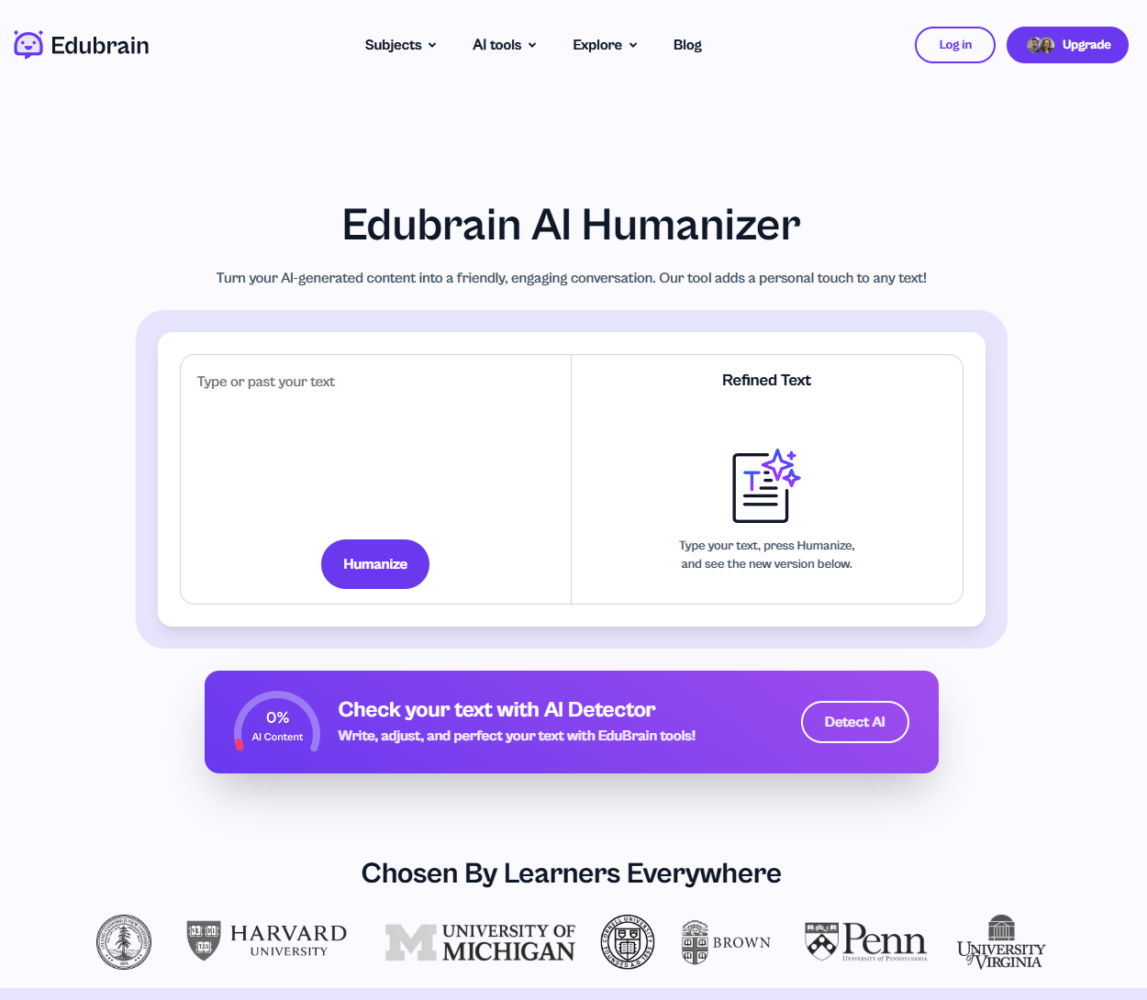 EduBrain’s AI Humanizer is designed to rewrite AI-generated text into language that feels natural, clear, and genuinely human. Instead of aggressive rewriting, it focuses on improving flow, sentence variety, and readability while preserving the original meaning. The tool works well for academic and informational content, offering balanced results that sound human without overcorrecting. Its clean interface and reliable output make it a strong choice for users who want subtle, effective humanization rather than drastic rewriting.