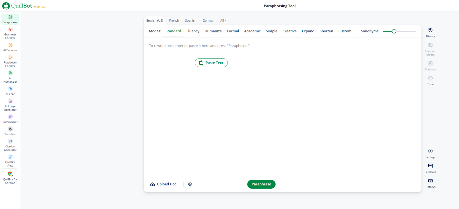 QuillBot isn’t a dedicated AI humanizer, but its paraphrasing tool is widely used to make AI content sound more natural. It excels at simplifying complex sentences and improving clarity, which often results in text that feels more human. The free version is limited to 125 words and fewer modes, but it’s still useful for refining short passages. QuillBot works best when readability and simplicity are the main goals.