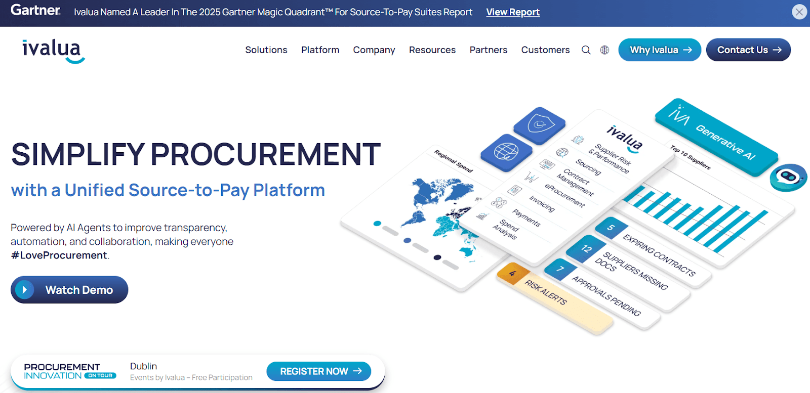 Ivalua offers one of the most powerful supplier management platforms available, combining flexibility with depth. It’s best suited for global organizations managing complex supplier networks and risk frameworks.